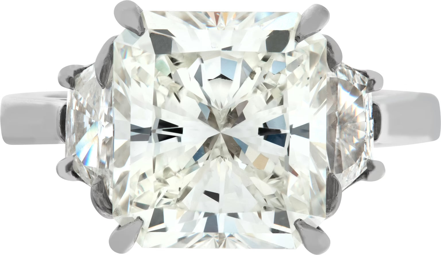 GIA certified Radiant Cut. 5.07ct. I - VS2. Platinum ring. Size 5.25