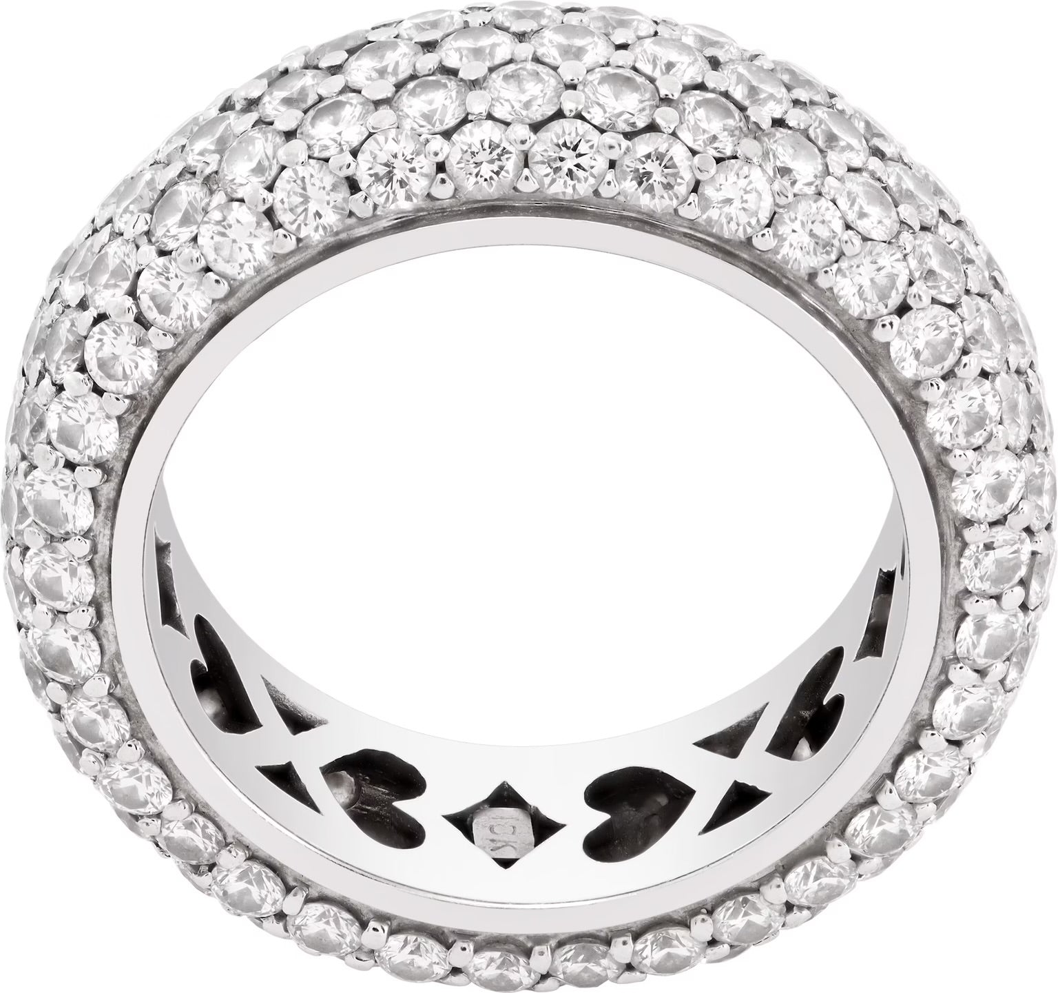 Wide diamonds eternity band. Pave set Round brilliant cut diamonds, total approx. weight over 2.50 carats, in 18K white gold G-H color and VS clarity. Size 4.5